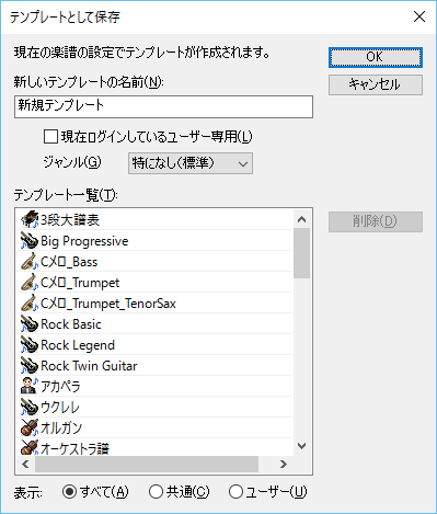 現在作成中の楽譜をテンプレートとして保存することができます。
