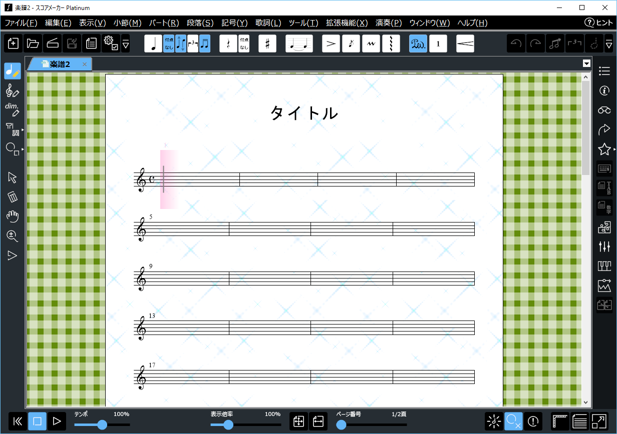 これらはあくまで作業中の雰囲気を変えるための表示となります。印刷には影響しませんし、作成した楽譜ファイルにも保存されません。