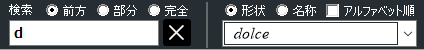「コントロールバー」の「検索」のをエディットコントロールをクリックし、エディットコントロールに「d」を入力します。