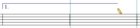 楽譜上にマウスを移動すると、マウスカーソルの先に繰り返し括弧が表示されます。 繰り返し括弧を貼り付ける先頭の小節にマウスカーソルを移動させて、マウスの左ボタンを一度クリックします。 このときにダブルクリックすると次の手順を行わずに1 小節分の長さとして入力を完了させることができます。