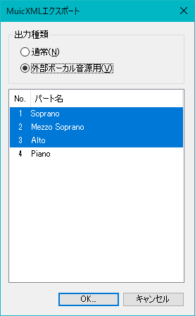 他社製楽譜作成ソフトなどで利用する場合は、通常(N)を選択して、OKを押してください。