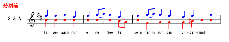 OKをクリックすると選択したパートが声部ごとに分割されます。
