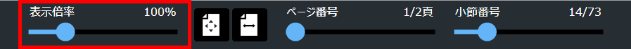 「表示倍率」スライダーの右上に表示されている表示倍率クリックして、倍率を入力します。