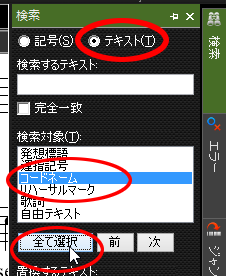 検索機能をつかって、全てのコードネームを選択状態にします。
