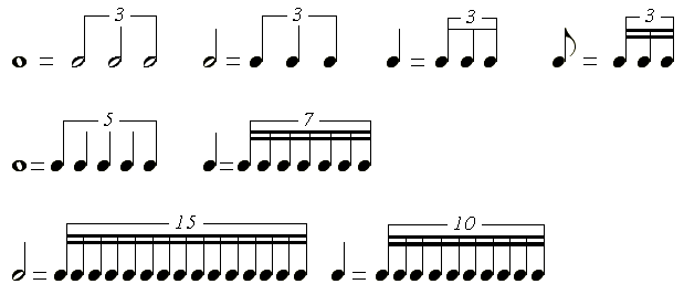 スコアメーカーでは連符を演奏するときの分割する元の長さは次のようになっています。