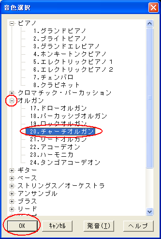 『オルガン』などの中に入っている音色が表示されます。