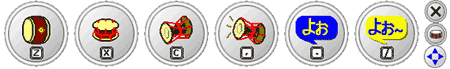 音楽帳3.0の「おとであそぼう」を立ち上げると、下の方に丸いパッドがあります。これが「リズムパッド」です。