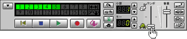演奏パネルを最大化し、テンポを最も遅い状態に変更します。(ピアノパートはミュートしておいた方がハーモニーを感じやすいでしょう)